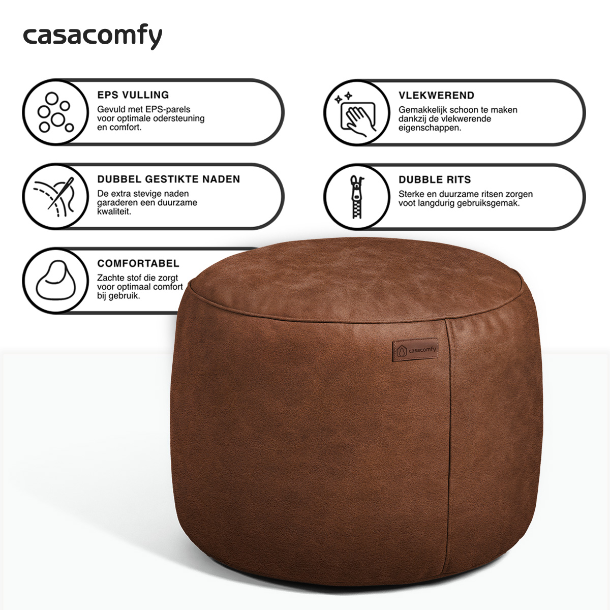 Casacomfy ModiPouf – Rond Poef – Caramel Latte – Voetenbankje – Lederlook